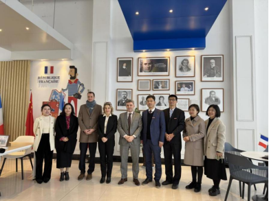 2月21日,法国驻上海总领事王度(Joan Valadou)先生一行5人来我院进行正式友好访问。理学院书记张掬婴、国际处、国际教育学院等相关人员进行接待。外宾一行首先参观了我院中法国际文化廊。王度先生对我院中法大数据项目人才培养的投入和所取得的成绩表示高度赞赏。