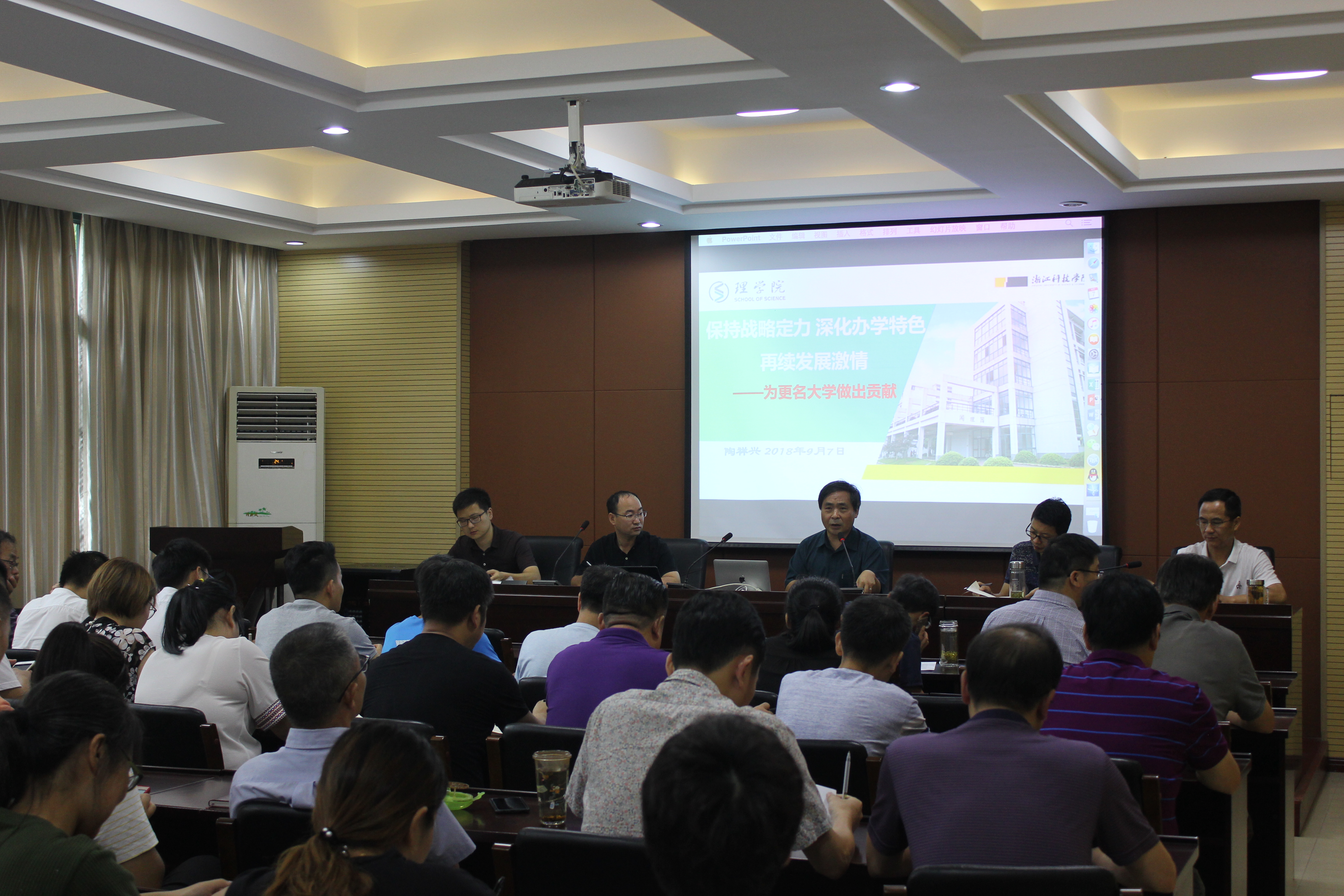 在再续发展激情部分,陶祥兴表示,坚持“以本为本、四个回归”,注重基础教学,开展精品在线课程建设,实现互联网+教学,构建立体化教育教学体系,3维3向4融合。3个维度的分层分类 (1)专业教育(普通班、特色班、卓越班)/公共课教学(普通班、特色班、试验班)(2)研究生教育/留学生教育/本科生教育;(3)中文教学/全英文教学/双语教学。3个指向的教育教学改革,纵向(X-direction)打造质量提升(渠道、办法、机制),横向(Y-direction)凝练教学特色(分层分类、习例教学、理论应用相结合),竖向(Z-direction)上层次建优势特色专业(校优、省特、国品、一流)。4融合:“数理+应用”融合的育人体系、理论与实际融合的课程体系、课堂与在线融合的培养体系、校内与校外融合的协同体系。服务“更名大学”的工作大局,狠抓教风学风、师德师风、严格各项教学规章制度,继续深入推进学院各项工作,迎接新机遇、增添新活力、再续新激情。(办公室:康 明)